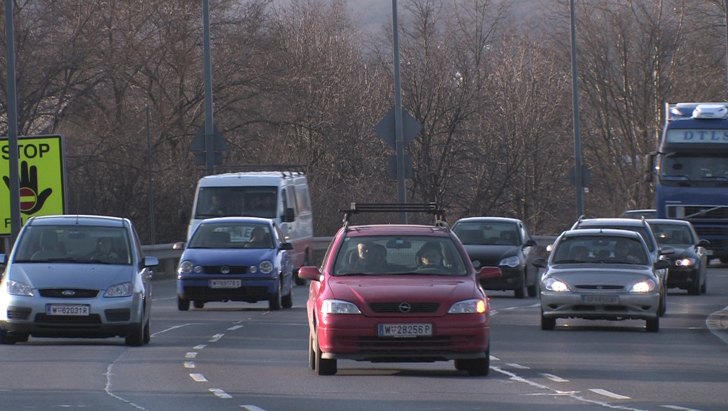 Description: Cars driving on the freeway in Vienna (Auhof) in Austria
