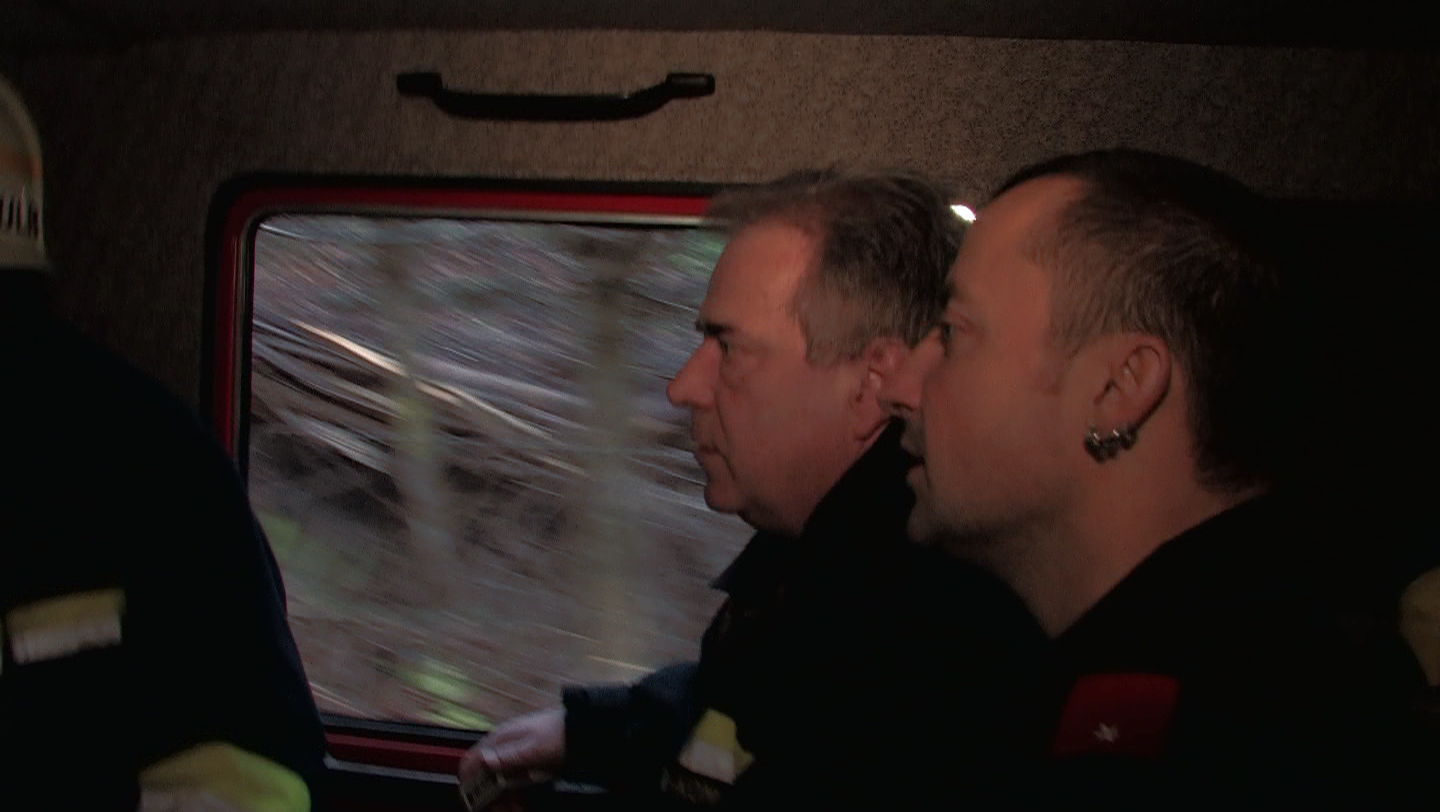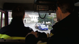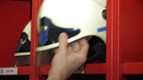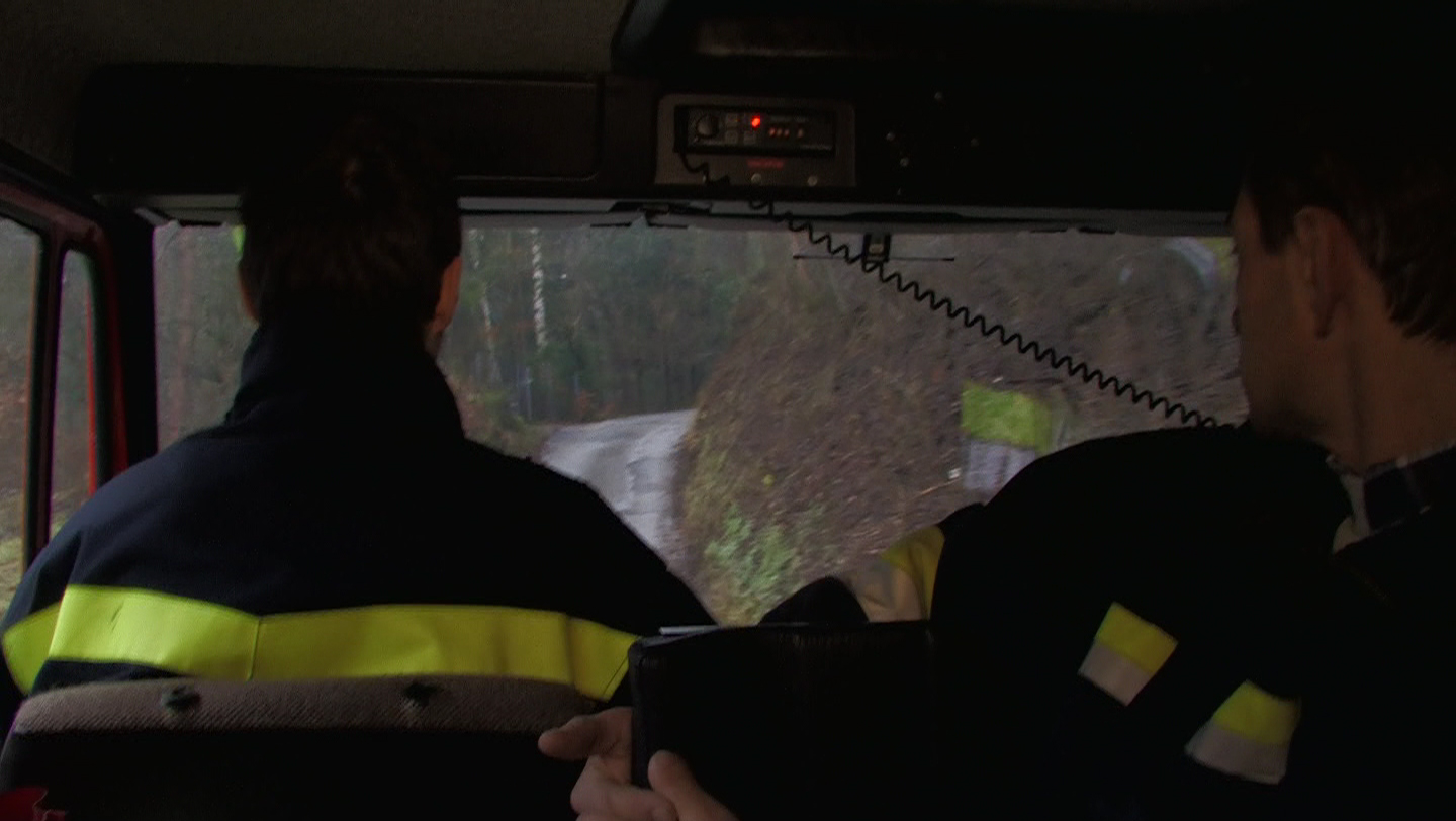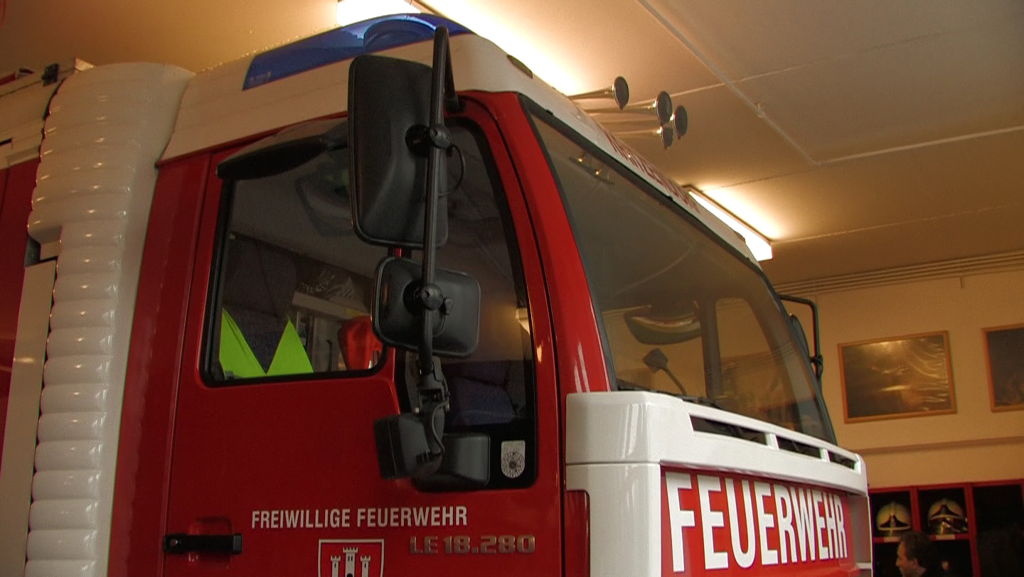 说明: Firemen preparing for a fire brigade operation, putting on their clothes and drivin with a fire engine.