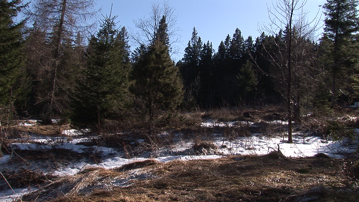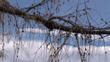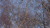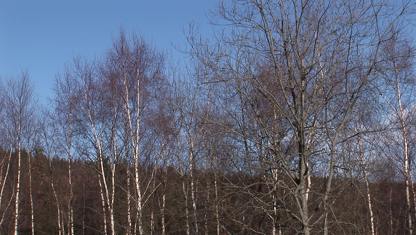 Description: White clouds are moving in the sky. Leaveless trees are moving in the wind.